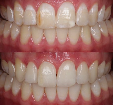 ICON - nowoczesna metoda leczenia próchnicy usuwania białych plam na zębach. Icon infiltracja płynną żywicą to nowoczesna metoda leczenia próchnicy początkowej oraz usuwania nieestetycznych białych plam na zębach. Zabieg ten wykorzystuje specjalną płynną żywicę, która wnika w porowate struktury szkliwa, blokując rozwój próchnicy oraz poprawiając estetykę zębów. Zabieg Icon jest bezinwazyjny, co oznacza, że nie wymaga borowania ani znieczulenia, co czyni go idealnym rozwiązaniem dla osób obawiających się tradycyjnych metod stomatologicznych. Działanie preparatu opiera się na szczegółowej znajomości budowy zęba, co pozwala na precyzyjne wypełnienie porowatych miejsc w szkliwie. Czytaj dalej >